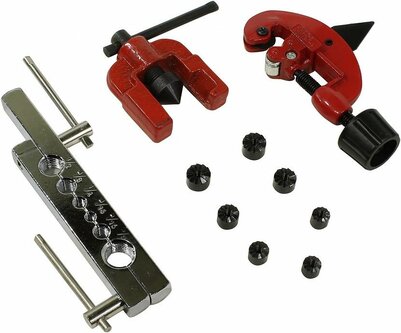 При развальцовке трубка держится вниз отверстием для снижения риска попадания в неё посторонних предметов. В развальцовщик она зажимается так, чтобы наружу выходило ровно 2 миллиметра – ни больше, ни меньше. После закрепления трубы, в неё устанавливается специальный конус, входящий в комплект инструмента. Для развальцовки он вкручивается в трубку до тех пор, пока вращение станет невозможным.