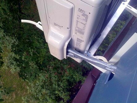 Так же кондиционеры крепят к стенам, неподалеку от окон, а до второго этажа внешний блок монтируется на максимально доступной высоте.